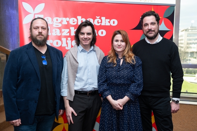 (Na prvoj fotografiji, slijeva: Matija Meić, Dawid Runtz, Nina Čalopek i Filip Fak, ravnatelj Zagrebačke filharmonije)