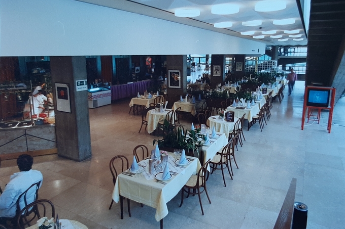 U visokom prizemlju Dvorane, na razini garderoba za publiku, uređen je restoranski prostor, a u predvorjima Velike dvorane nalazio se Zeleni salon, takozvani Green Room. U predvorju Male dvorane nalazio se prostor za mnogobrojne predstavnike medija koji su tih dana izvještavali o Eurosongu i tijeku priprema.