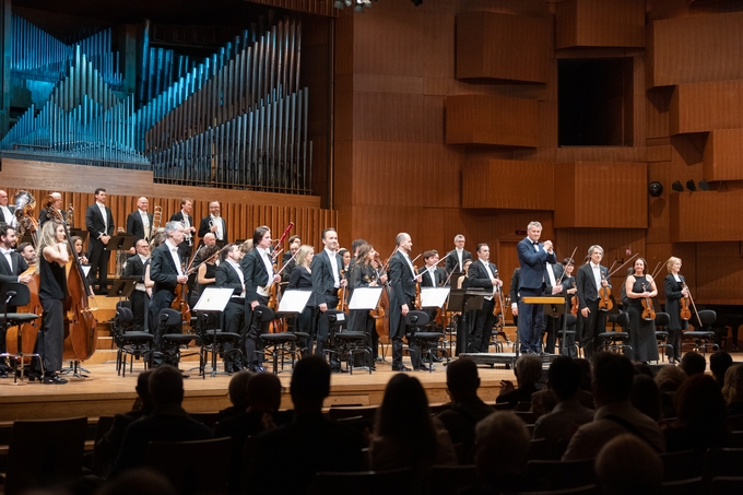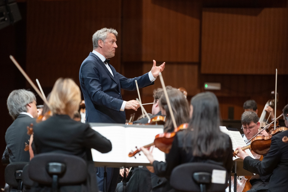 Šef dirigent Orkestra, Markus Poschner, rodom iz Münchena, ove se godine oprašta od orkestra koji je vodio proteklih deset godina. Na pozornici je čak izostavio frak kako bi se, vjerojatno, osjećao slobodnije u klasičnom odijelu.